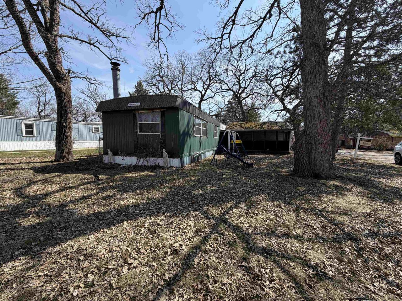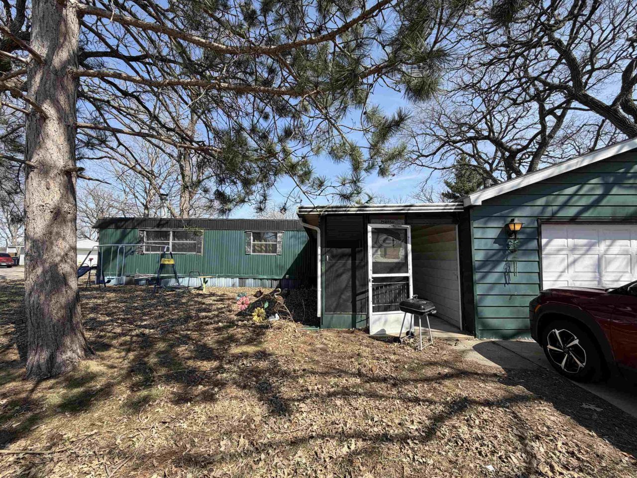 Peaceful village living. Needs TLC. 2 bedrooms, 1 bathroom, 2 car garage condo. Main bedroom features double closets. Desirable lot big enough for a double wide with two enclosed porches. Updated mechanicals: furnace approximately 5 years old, newer water heater, newer appliances stay with the home.