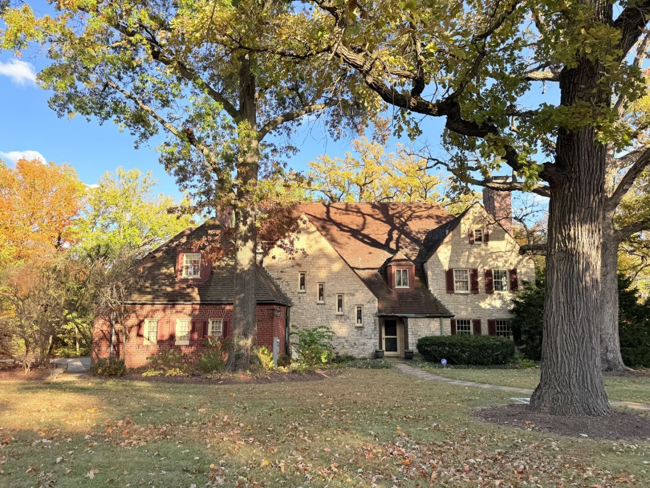 Located in the highly sought-after Grove addition, this stately Cotswold (or Tudor) architecture-inspired residence offers timeless charm, elegance, and ample space for both relaxation and entertainment. The 1.7 acre property is surrounded by meticulously landscaped grounds with mature trees and features a large, open backyard perfect for family activities and gatherings, hosting a wedding reception or private relaxation. The heart of the home is a spacious kitchen, boasting abundant built-in cabinetry, high-end Sub Zero appliances which includes a matching wine fridge and refrigerator, a Wolf double oven, and a central island with a Wolf cook top makes it perfect for cooking and social gatherings. A butler's pantry adds convenience for hosting and organization. Thoughtfully designed, it is equipped with a convenient swinging door, which connects to the formal dining room, facilitating effortless entertaining. The living room invites you to relax with a large wood-burning fireplace, ideal for cozy evenings. Both the family and living rooms feature narrow French doors that open to a serene stone patio, seamlessly blending indoor and outdoor living. The dining room, living room and family room are connected by doors that can be left open or closed, offering a versatile layout that allows for both an open, flowing pattern and intimate, private settings as desired. The main floor has expansive 6-foot hallways, enhancing the flow and grandeur of the home. For work or quiet retreat, the main floor office is a standout with custom-built cherry wood bookcases on all four walls. This home offers the unique advantage of stacked hallway closets on both the first and second floors, thoughtfully designed to accommodate a future elevator installation. Upstairs is accessed by 2 staircases and a 5-foot hallway that leads to 5 generously sized bedrooms, a nursery and a rec room with built-in shelving. The built-in beds in bedrooms 3 and 4 with built-in cabinetry are heated by the central heating system. The 5th bedroom offers a 10' x 6' closet with built-in chestnut wood features and a 11' x 15' dressing room with all built-in cabinets, offering plenty of room for organizing your wardrobe. Full unfinished basement ready for finishing includes a 2nd wood burning fireplace and a 2nd W/D area. This home is built with solid concrete and steel construction, offering exceptional durability, insulation and soundproofing. Both the first and second floors feature 22 inches of reinforced concrete, providing unmatched structural integrity and stability. This construction method ensures lasting strength and peace of mind. Included is a spacious 40' x 70' walk-up attic with a fully floored area, offering excellent storage or potential for future expansion. An attic fan provides ventilation, while the existing layout makes it easier to incorporate ductwork for central air installation if desired. This lovely home also features a 3 car attached garage adding both pr