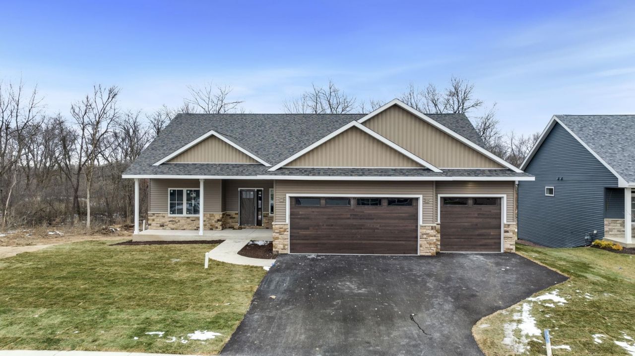 This beautiful Craftsman-style home features striking stonework on the front elevation and is set along the peaceful Kishwaukee River, offering a scenic and serene backdrop. Designed with a spacious open-concept layout, the floor plan includes 3 bedrooms and 2.5 bathrooms, making it ideal for both everyday living and entertaining. The main living space flows easily, creating a warm and inviting atmosphere throughout. The primary suite includes a private en-suite bathroom and a walk-in closet, while the main floor also offers a convenient laundry and mudroom area. A covered front porch leads into the welcoming entryway, and the full exposed lower level offers walkout access and the potential for additional living space. With thoughtful design and quality craftsmanship throughout, this home blends style, comfort, and function in a peaceful, desirable setting.