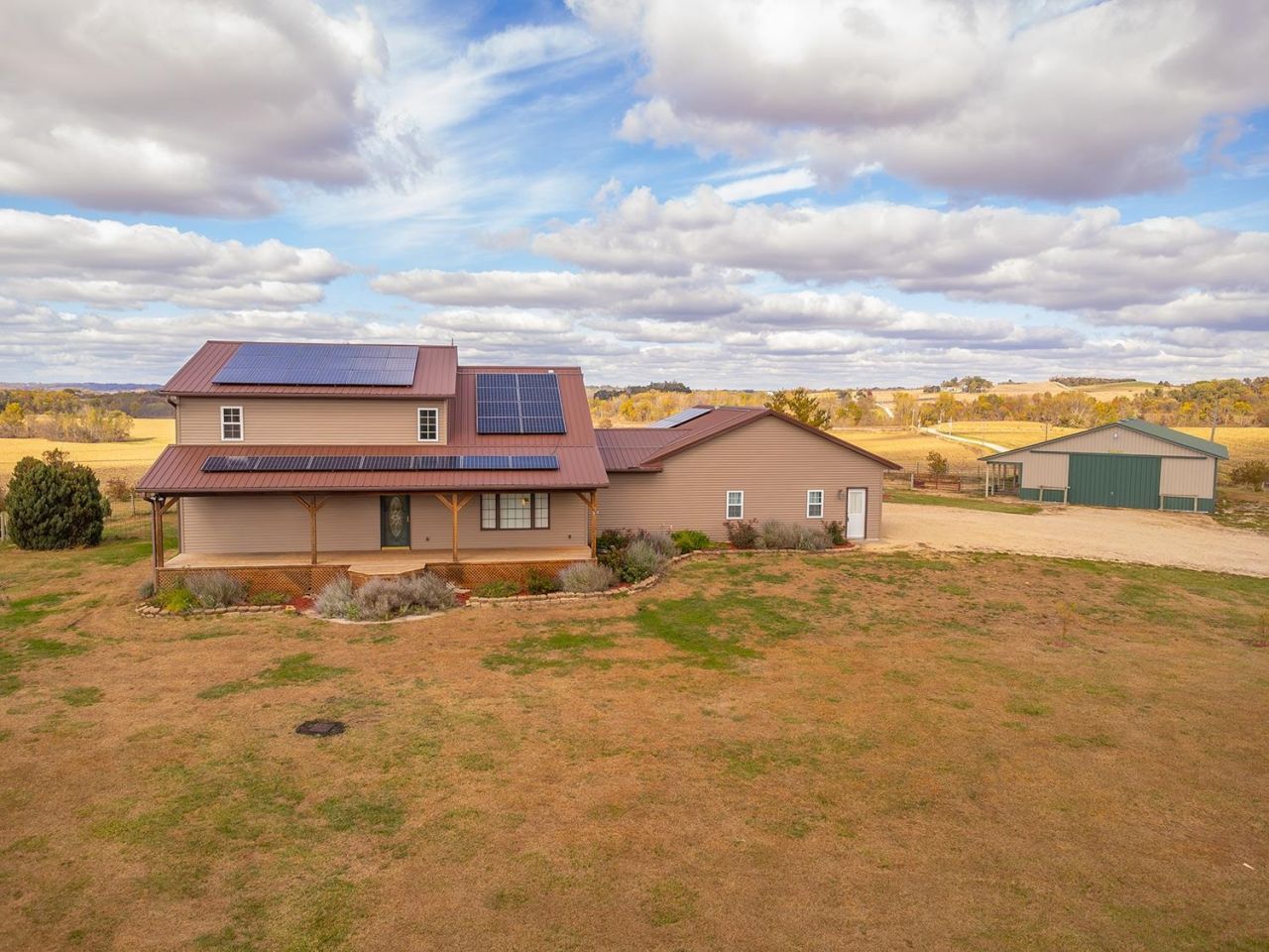 Discover the perfect blend of comfort, space, and country living on this picturesque 5.31-acre corner lot. This inviting two-story home offers 3 bedrooms, 2 full bathrooms, and 2 half baths designed with thoughtful details and modern updates throughout. The main level welcomes you with a spacious great room that seamlessly connects the living area, dining space with access to a screened-in rear deck, and a U-shaped kitchen complete with a walk-in pantry. The primary suite features his and hers walk-in closets, private deck access, and a newer walk-in shower for a touch of luxury. A convenient main-floor laundry with half bath, plus an additional half bath off the hallway, adds everyday ease. An open staircase leads to the upper-level loft, offering a cozy family room area, full bath, and two guest bedrooms. The lower level provides even more potential with a nearly finished recreation room (drywalled and awaiting a drop ceiling), two storage/mechanical rooms, and a stubbed-in full bathroom ready for completion. Energy efficiency was a priority in this home, featuring solar panels, new furnace and central air (2023), updated appliances (2023 - 2025) and siding and windows in 2024. The oversized three-stall attached garage offers cabinet storage, workspace, openers on both doors and heated floor. For equestrian enthusiasts or hobby farmers, the 40'x60' pole barn includes stalls, a tack room, and an 8'x60' lean-to, plus a fenced corral area ready for your animals. Whether you are dreaming of a peaceful country retreat, hobby farm, or your next family home, this property delivers space, function, and flexibility in a serene rural setting. This property is equipped with solar panels. The Buyer must agree to take all steps necessary to complete any documentation and submit to SunStrong (formally SunPower) the required paperwork for the assignment and assumption of the solar panel lease needed in a timely manner. Therefore, Buyer must agree to assume all of Seller's rights and obligations under the terms of the agreement.