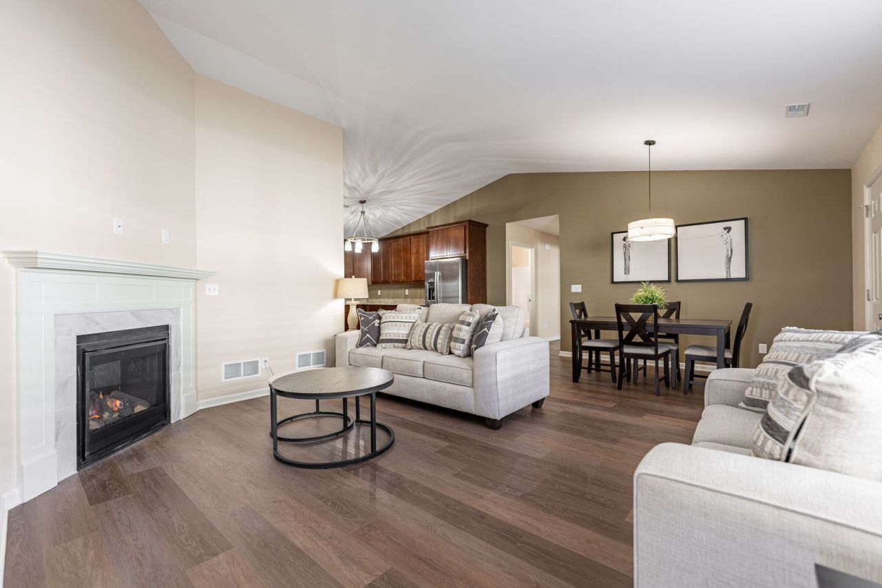 Modern Luxury Meets Everyday Convenience in a New Construction Townhome! Discover the perfect blend of sophistication and functionality in this newly constructed townhome. With a modern open-concept layout, the kitchen, dining, and living areas flow seamlessly-perfect for entertaining and daily living. The living room boasts a cozy gas fireplace and dramatic cathedral ceilings, adding warmth and elegance to the space. The gourmet kitchen is a chef's dream, featuring 42-inch upper cabinets with rich crown molding, granite countertops, and stainless steel appliances, combining style and practicality with ample storage. This home includes two spacious bedrooms and a versatile flex room that can be converted into a third bedroom or used as a home office. The primary suite is a relaxing retreat, complete with a walk-in closet and an en suite bathroom featuring a double vanity and an oversized shower. Full Basement with an egress window that's great for storage or finish to suit your needs. A combination laundry, mudroom, and storage area conveniently located off the garage adds to the home's functionality. The attached, fully insulated garage is drywall-finished and includes an insulated door. Enjoy maintenance-free living with an HOA that handles snow removal and lawn care, giving you more time to relax and enjoy your surroundings. Ideally located near parks, walking paths, schools, restaurants, and shopping, this townhome offers unmatched comfort, style, and convenience. Experience the best of modern living. Photos are of Model home. Pet friendly.